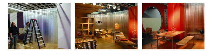 IMM (Keulen): een budgetstand met golfplaat en bamboe. Spectaculair en creatief.